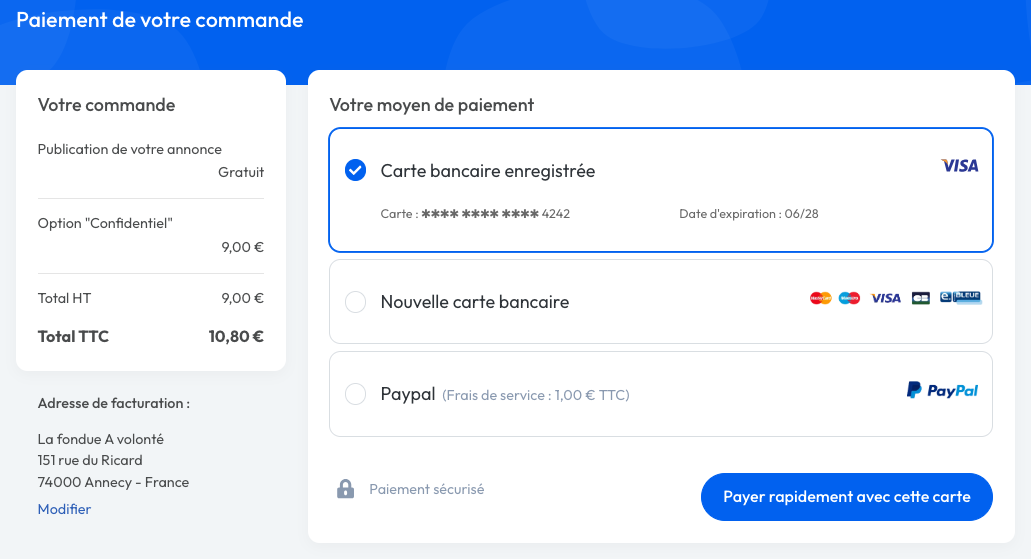 3. Procédez ensuite à son paiement en renseignant vos coordonnées bancaires et en cliquant sur "Payer".