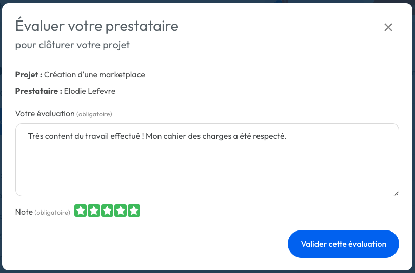 En parallèle, le prestataire sera informé de votre évaluation.