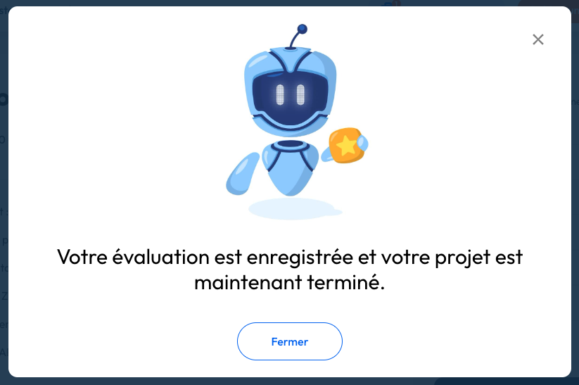 Lorsque vous êtes sur la messagerie de votre projet, cliquer sur "Indiquer le projet comme terminé".