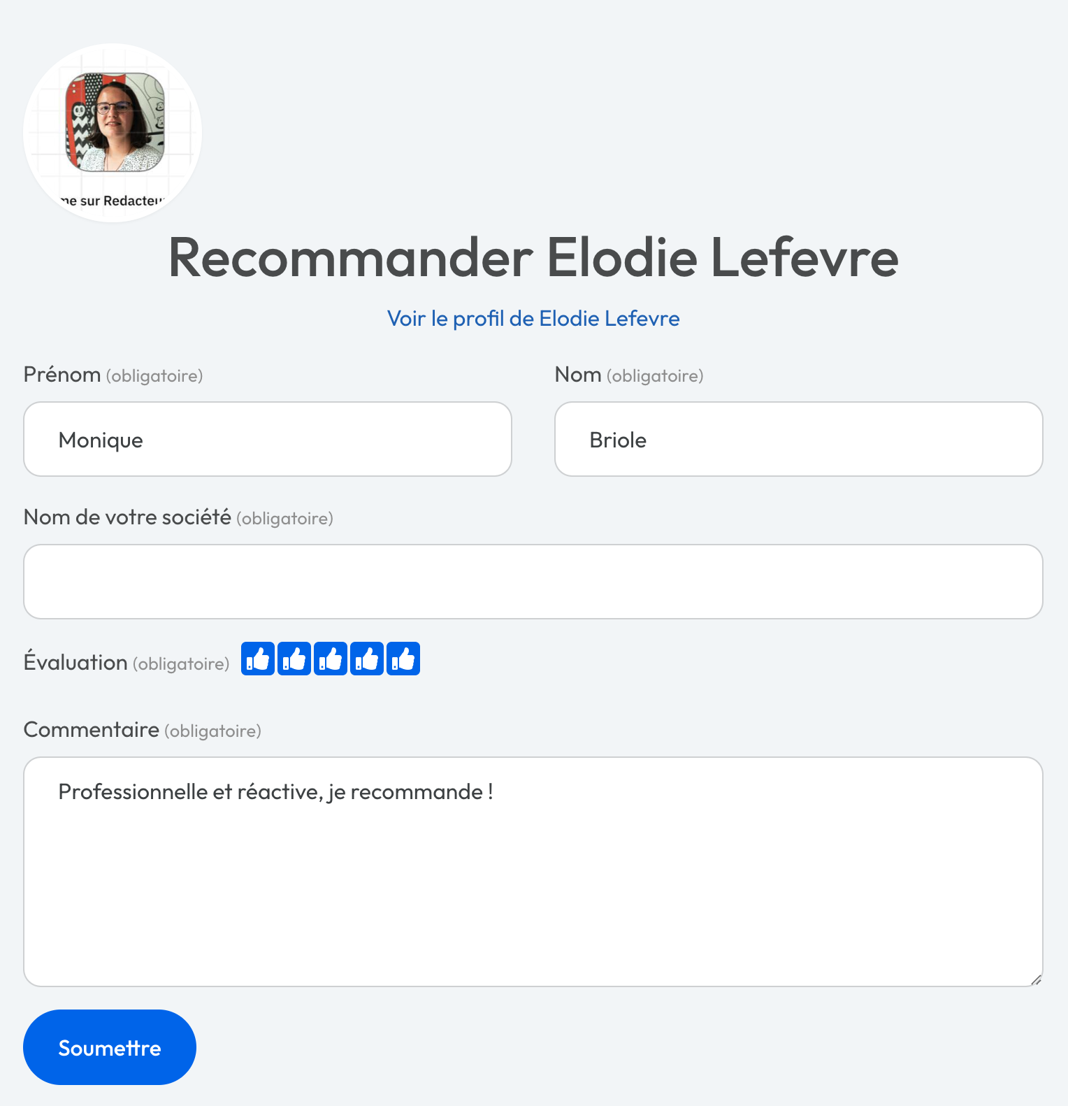 Votre recommandation lui permettra de se distinguer de ses confères sur la plateforme.
