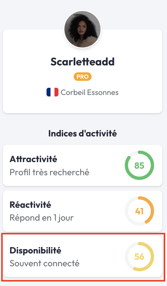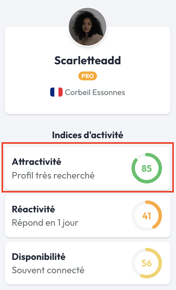 Plus le score du freelance s'approche de 100, plus son profil est considéré comme attractif. Cela signifie que le freelance a complété son profil à 100% et qu'il est très réactif aux demandes et projets déposés sur Codeur.com.