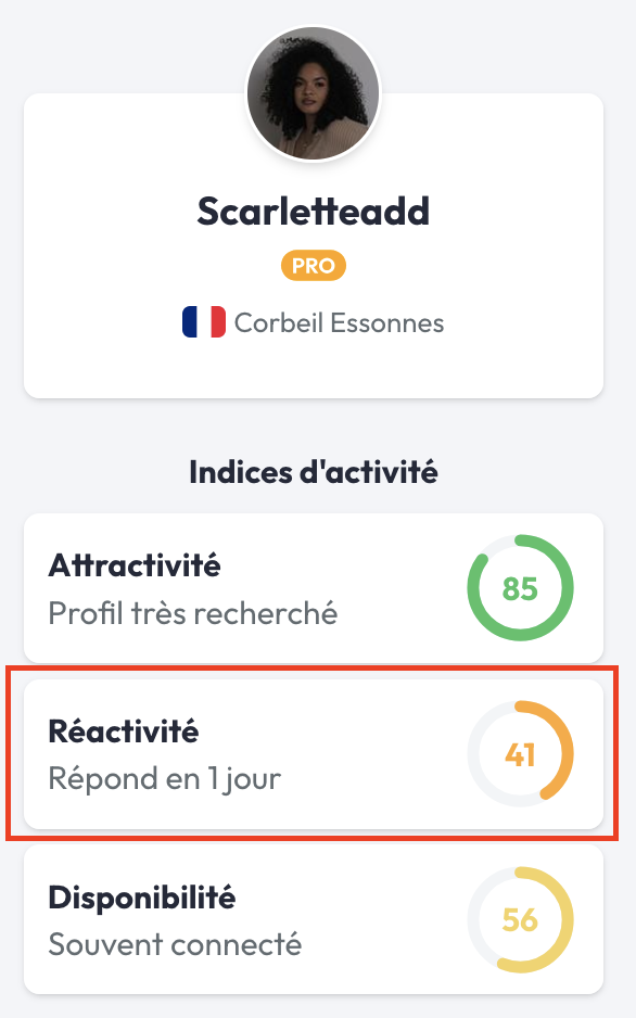 Si le score de cet indice s'approche de 100, cela signifie que le freelance est hyper réactif dès l'instant où vous le sollicitez via la messagerie privée de votre compte.