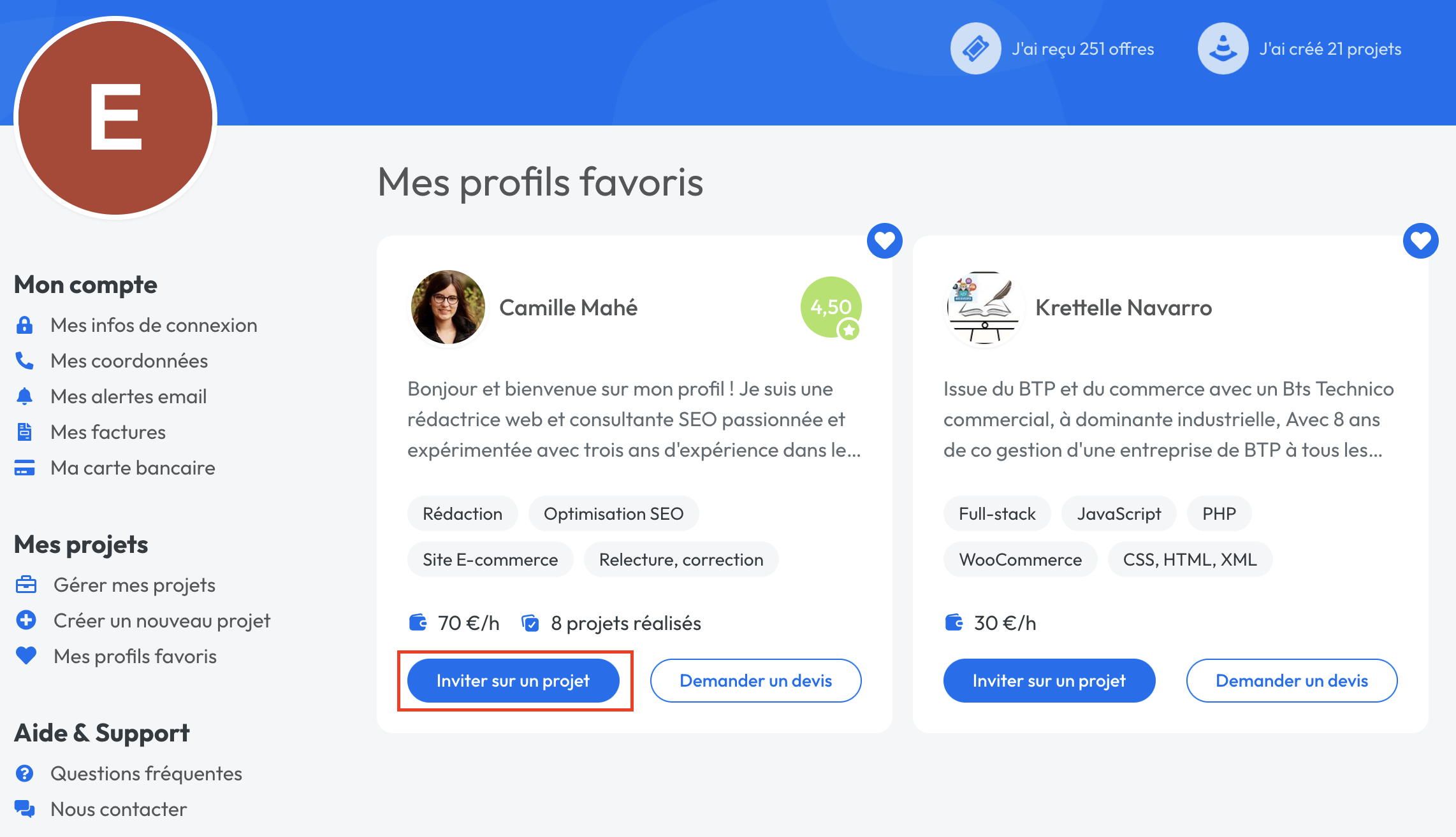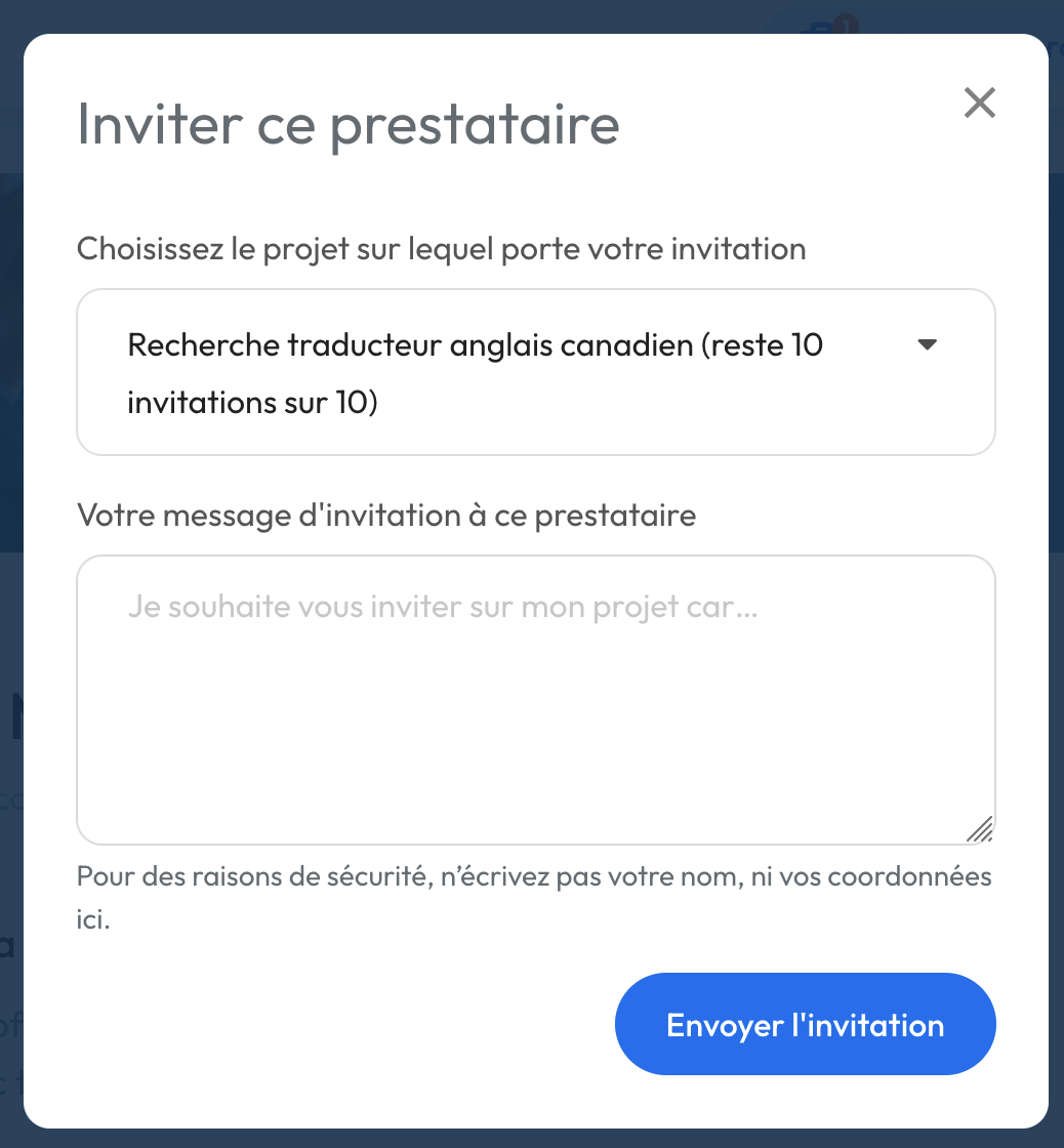 - L'inviter à proposer une offre sur l'un de vos projets publiés