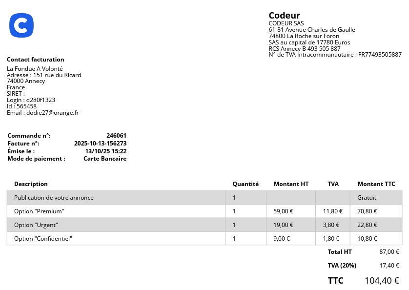 Retrouvez ensuite facilement vos factures de ces dernières dans votre espace en ligne.