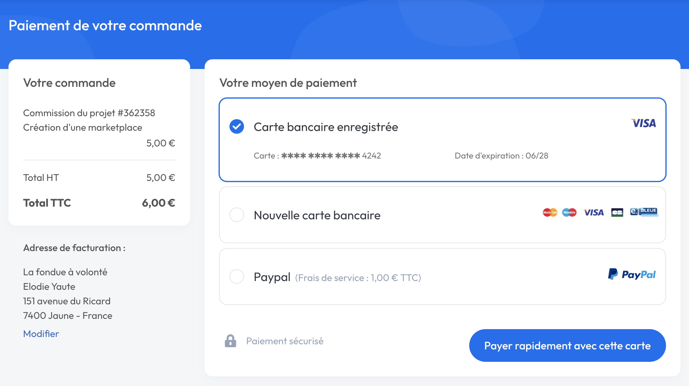 4. Finalisez le paiement en cliquant sur "Payer rapidement avec cette carte".