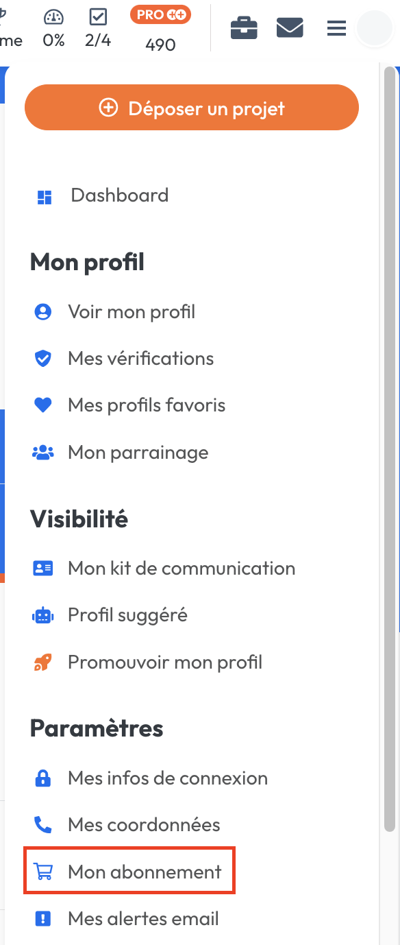 1. Depuis votre menu déroulant, cliquez sur "Mon abonnement"