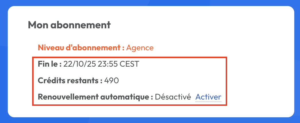 4. Enfin, lorsque vous revenez à l'interface de l'abonnement, vous observez le changement du statut de votre abonnement et sa date de fin.
