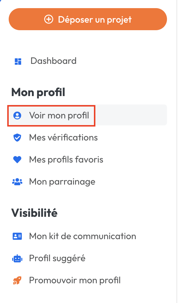 1. Sur votre menu d'actions, cliquez sur "Voir mon profil"