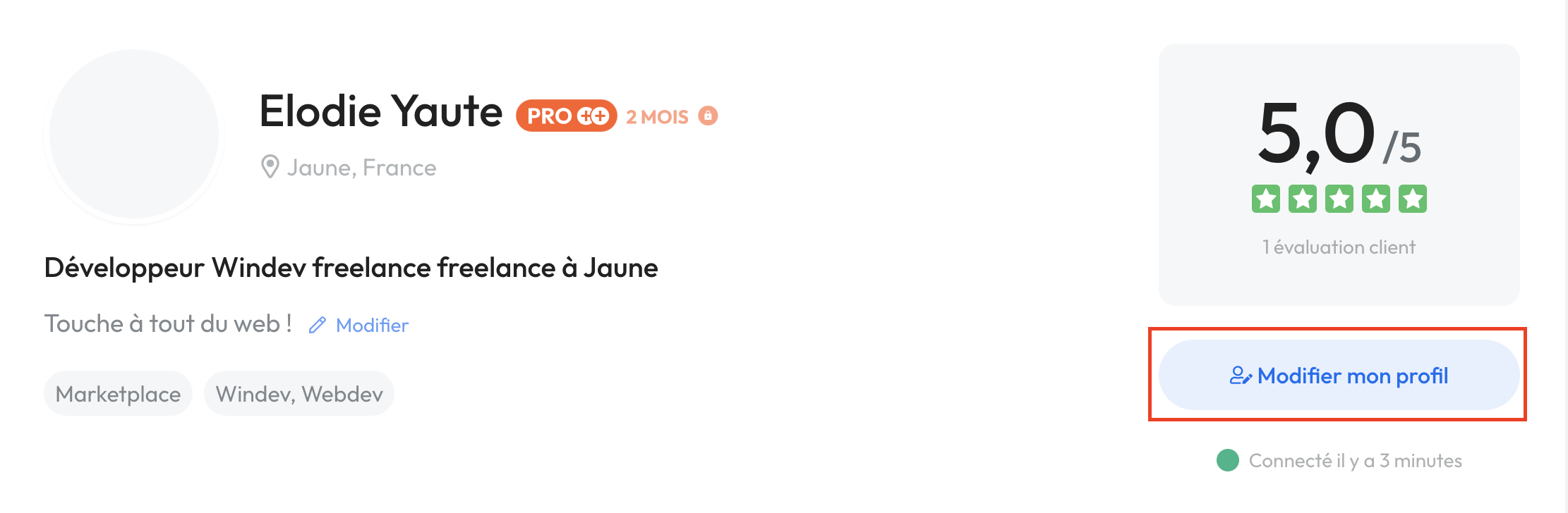 2. Depuis votre profil, cliquez sur "Modifier mon profil".
